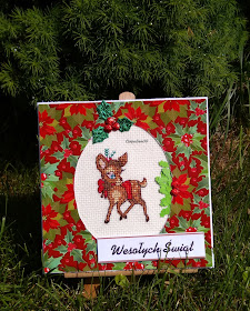 I ostatnia karteczka bożonarodzeniowa wg wytycznych - renifer i śnieżynki. Renifer oczywiście jest haftowany, a śnieżynek też dostatek :)